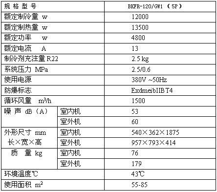 BKFR-120/GW1柜式防爆空調技術參數